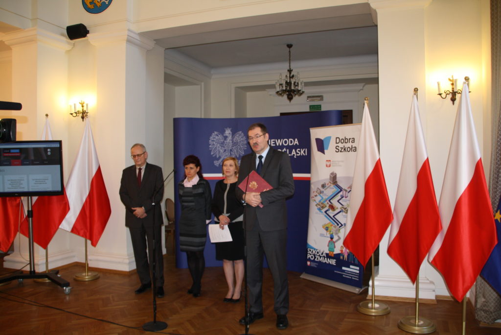 Podczas konferencji w Sali Kolumnowej Dolnośląskiego Urzędu Wojewódzkiego obecne były także Małgorzata Henglewska Dyrektor Wydziału Nadzoru Pedagogicznego i Małgorzata Sandecka Dyrektor Wydziału Rozwoju Edukacji.