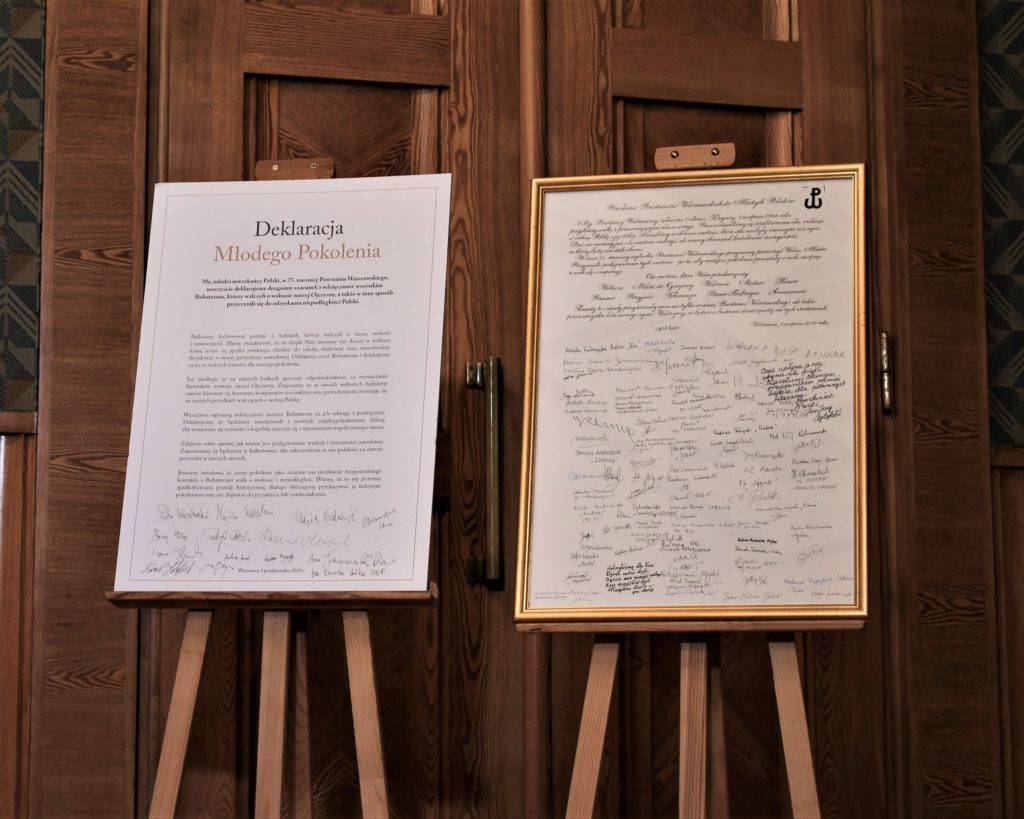 1 października, odbyła się wspólna konferencja Ministra Edukacji Narodowej Dariusza Piontkowskiego oraz dyrektora Muzeum Powstania Warszawskiego Jana Ołdakowskiego. Podczas spotkania przedstawiciele 15 organizacji młodzieżowych podpisali Deklarację Młodego Pokolenia, która jest odpowiedzią na Przesłanie Powstańców Warszawskich do młodych Polaków.