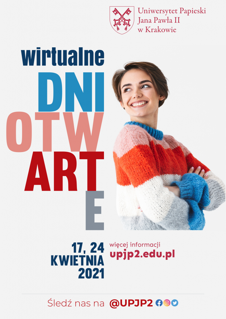 Dni otwarte Uniwersytetu Papieskiego Jana Pawła II w Krakowie. W dniach 17 i 24 kwietnia 2021 Uniwersytet Papieski Jana Pawła II w