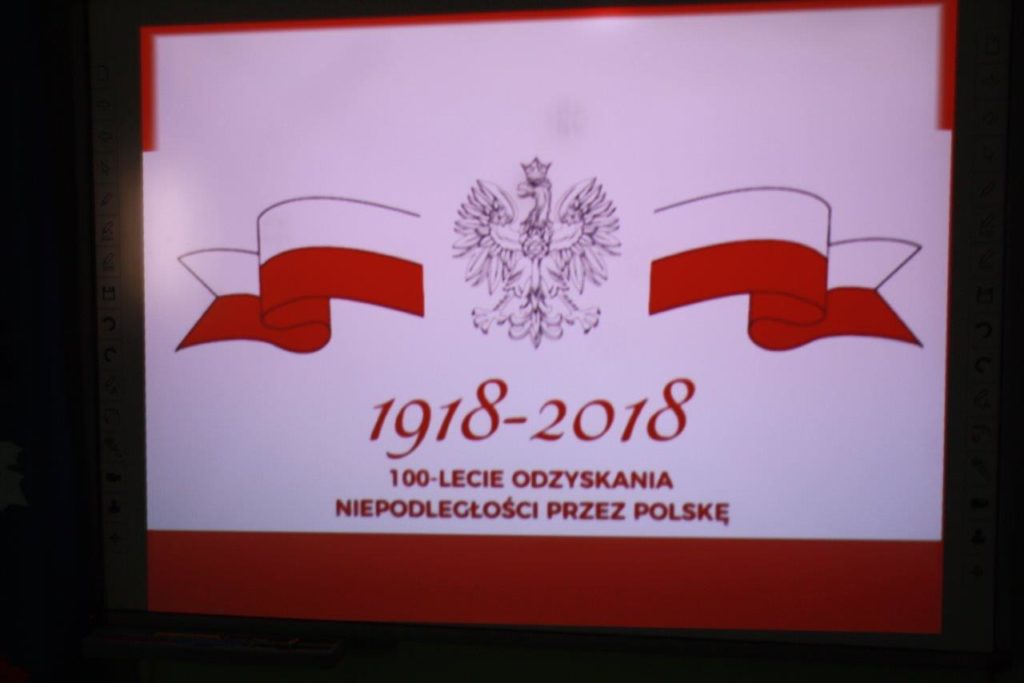 Uczniowie zaprezentowali program artystyczny z okazji 100.rocznicy odzyskania niepodległości przez Polskę.