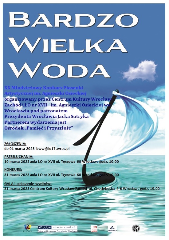 31 marca  Dolnośląski Kurator Oświaty Roman Kowalczyk uczestniczył w jubileuszowej Gali Finałowej XX Młodzieżowego Konkursu Piosenki Artystycznej im. Agnieszki Osieckiej „Bardzo Wielka Woda” organizowany przez Liceum Ogólnokształcące nr XVII im. Agnieszki Osieckiej we Wrocławiu. Wydarzenie odbyło się w Centrum Kultury Wrocław-Zachód przy ul. Chociebuskiej.