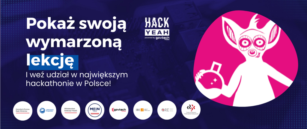 już 19 listopada 2022 roku w Tauron Arenie Kraków odbędzie się największy stacjonarny hackathon w Europie – HackYeah powered by GovTech Polska. Na zespoły uczniów szkół podstawowych klas VII-VIII pod opieką nauczyciela czeka wyzwanie #HackEdu, które polega na stworzeniu pokazowej lekcji pod tytułem: ,,Moja lekcja w szkole jutra” z wykorzystaniem sprzętu z programu Laboratoria Przyszłości.