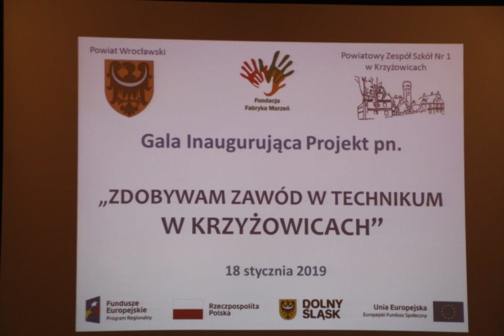 18 stycznia br. Roman Kowalczyk Dolnośląski Kurator Oświaty uczestniczył w gali inaugurującej projekt pn. „Zdobywam zawód w technikum w Krzyżowicach” realizowany w partnerstwie przez Powiat Wrocławski i Fundację Fabryka Marzeń,  która odbyła się w Zespole Szkół zawodowych Nr 1 w Krzyżowicach.