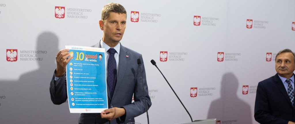 Zalecenia dla dyrektorów szkół i placówek, które znajdują się w strefie żółtej i czerwonej, możliwe modele kształcenia w czasie epidemii, procedury postępowania dyrektora i służb sanitarnych w sytuacji wystąpienia zagrożenia zakażenia COVID-19 w szkole, placówce – to główne tematy wspólnej konferencji Ministra Edukacji Narodowej i Głównego Inspektora Sanitarnego.