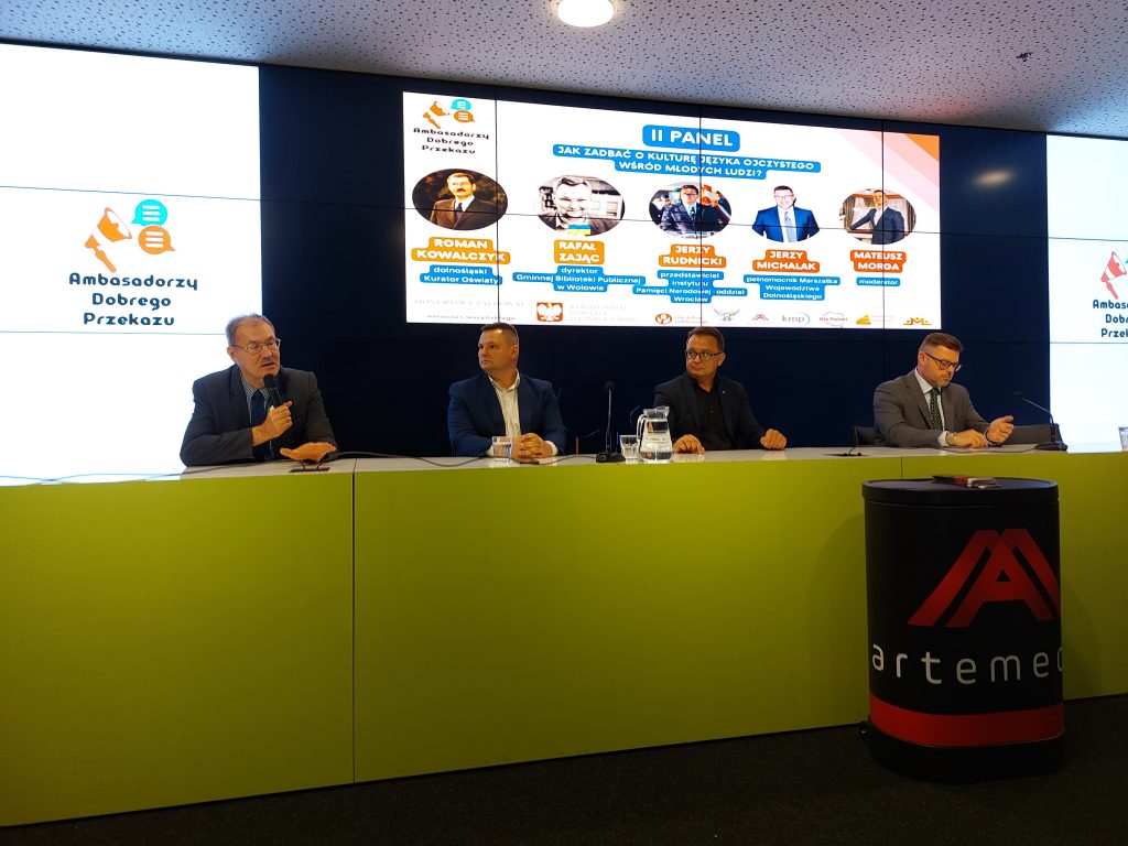 23 września br. Dolnośląski Kurator Oświaty Roman Kowalczyk uczestniczył w panelu dyskusyjnym podczas konferencji pn. „Ambasadorzy Dobrego Przekazu” organizowanej przez Fundację ArteMedia.  Konferencja skierowana do uczniów dolnośląskich szkół przybliżała tematykę związaną z szeroko pojętą kulturą wypowiedzi oraz pogłębieniem wiedzy na temat „fake newsów”.
