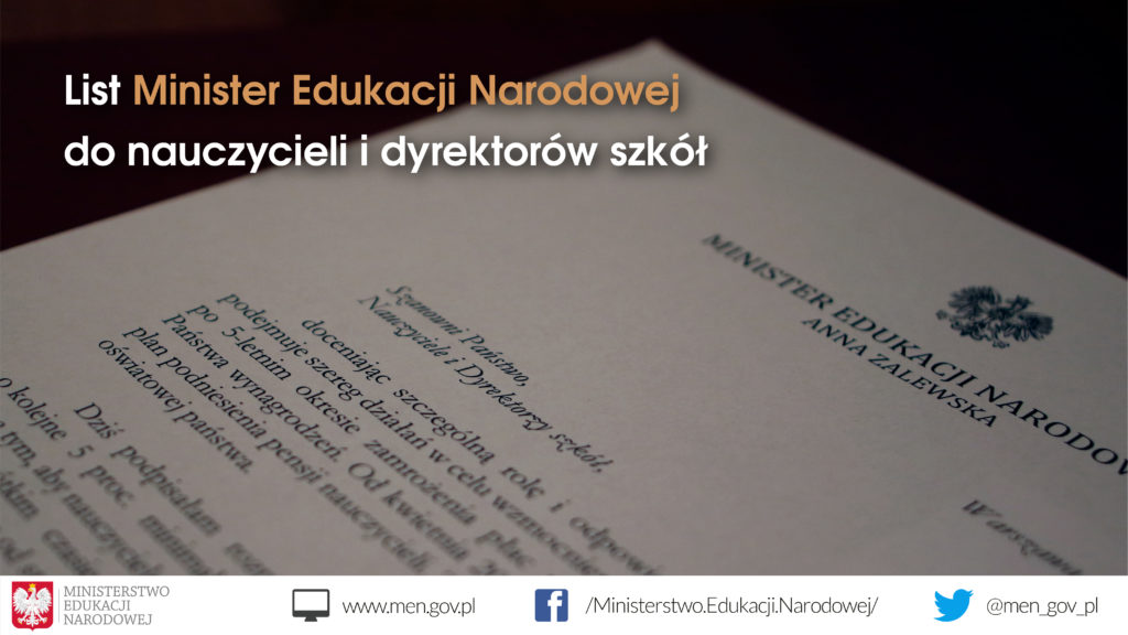 List Minister Edukacji Narodowej do nauczycieli i dyrektorów szkół