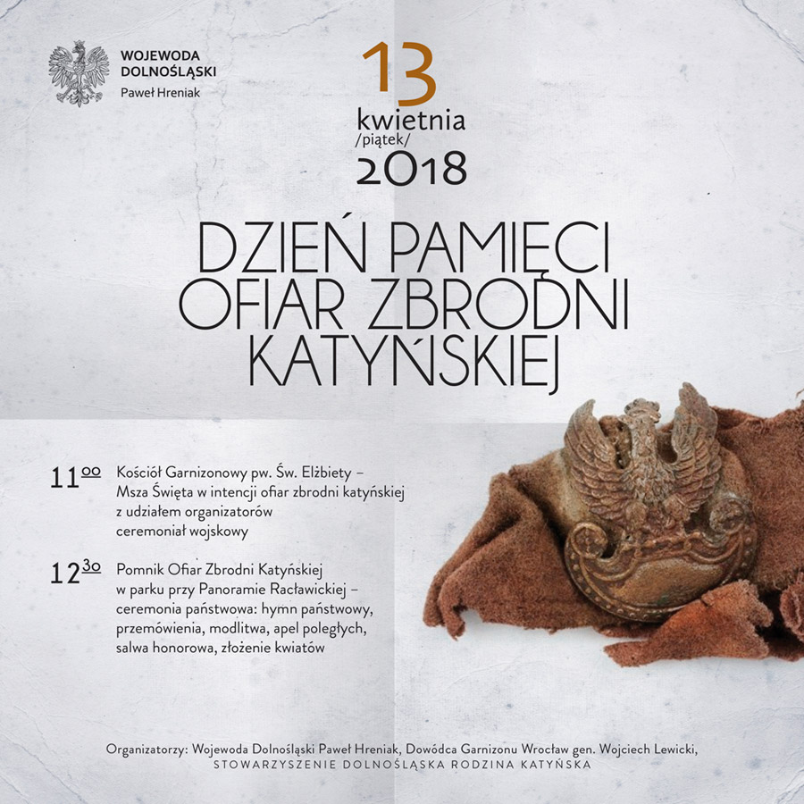 Wrocławskie obchody organizowane są przez Wojewodę Dolnośląskiego Pawła Hreniaka, Dowódcę Garnizonu Wrocław gen. Wojciecha Lewickiego oraz Stowarzyszenie Dolnośląska Rodzina Katyńska.