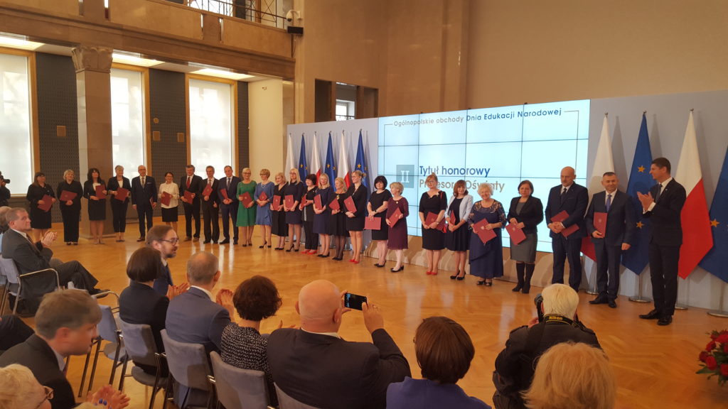 W piątek, 11 października br. w Kancelarii Prezesa Rady Ministrów odbyły się ogólnopolskie obchody Dnia Edukacji Narodowej z udziałem Ministra Edukacji Narodowej Dariusza Piontkowskiego. Podczas uroczystości zasłużeni nauczyciele oraz pracownicy oświaty otrzymali odznaczenia państwowe, medale, nagrody Ministra Edukacji Narodowej, a także tytuły honorowego Profesora Oświaty.