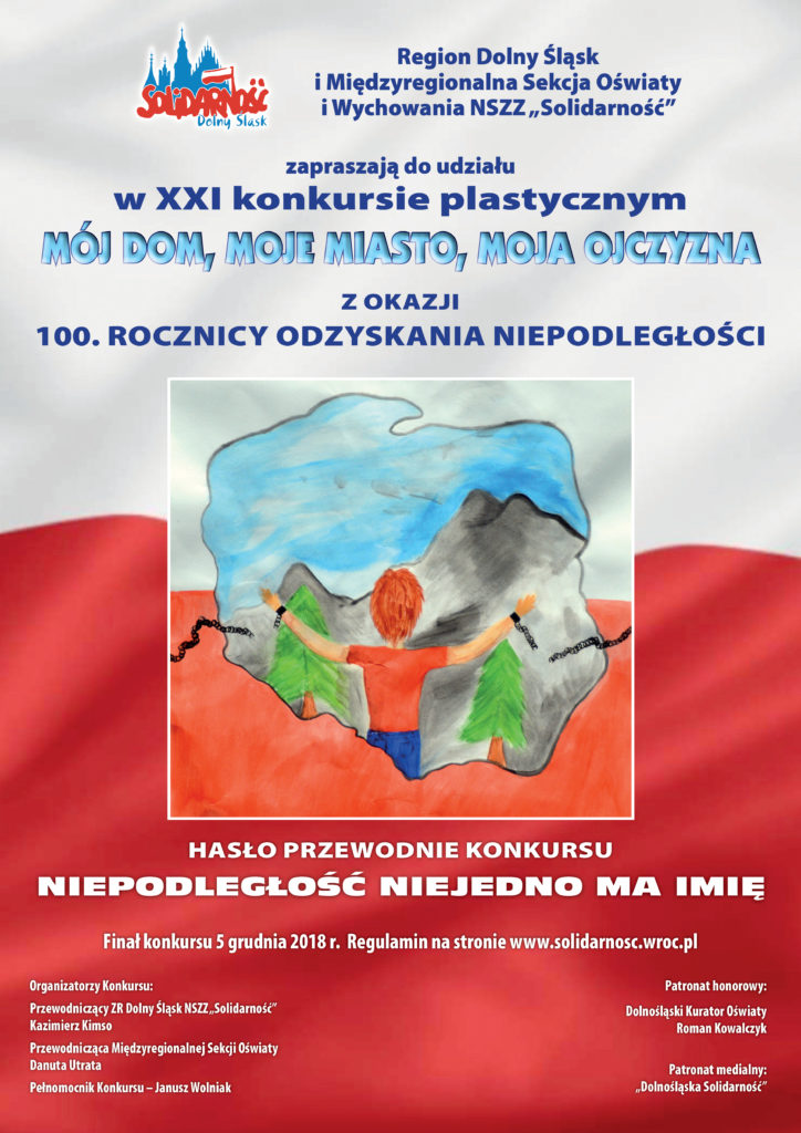 Organizatorem konkursu jest Międzyregionalna Sekcja Oświaty i Wychowania  i Zarząd Regionu NSZZ “Solidarność” Dolny Śląsk. Dla uczczenia 100. rocznicy odzyskania niepodległości tegoroczne hasło przewodnie konkursu brzmiało: „Niepodległość niejedno ma imię”.