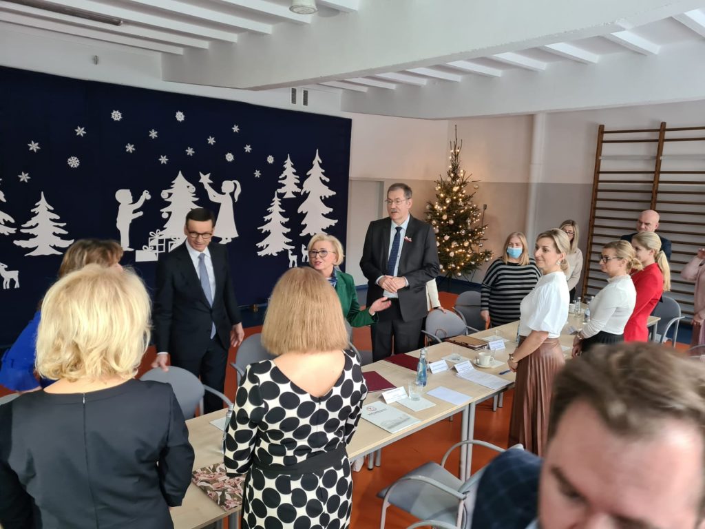 19 grudnia Premier Mateusz Morawiecki i wiceminister Marzena Machałek w Szkole Podstawowej nr 8 w Zespole Szkolno-Przedszkolnym nr 1 w Oławie dyskutowali z ekspertami na temat wsparcia dzieci i młodzieży ze specjalnymi potrzebami edukacyjnymi.