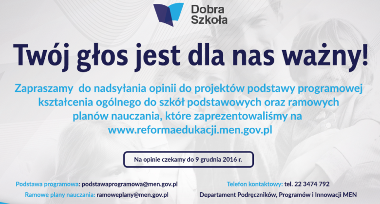 W ramach prekonsultacji zapraszamy do nadsyłania opinii do projektów podstawy programowej kształcenia ogólnego do szkół podstawowych oraz ramowych planów nauczania.