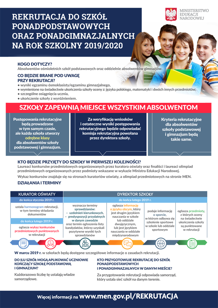 • zasady rekrutacji dotyczące uczniów kończących 8-letnią szkołę podstawową oraz absolwentów ostatniej klasy gimnazjum, podkreślając m. in. że postępowania rekrutacyjne dla tych dwóch grup uczniów zostaną przeprowadzone odrębnie, co oznacza, że uczniowie nie będą rywalizowali o te same miejsca w szkołach –  będą ubiegać się o miejsca przewidziane tylko dla absolwenta konkretnej szkoły,