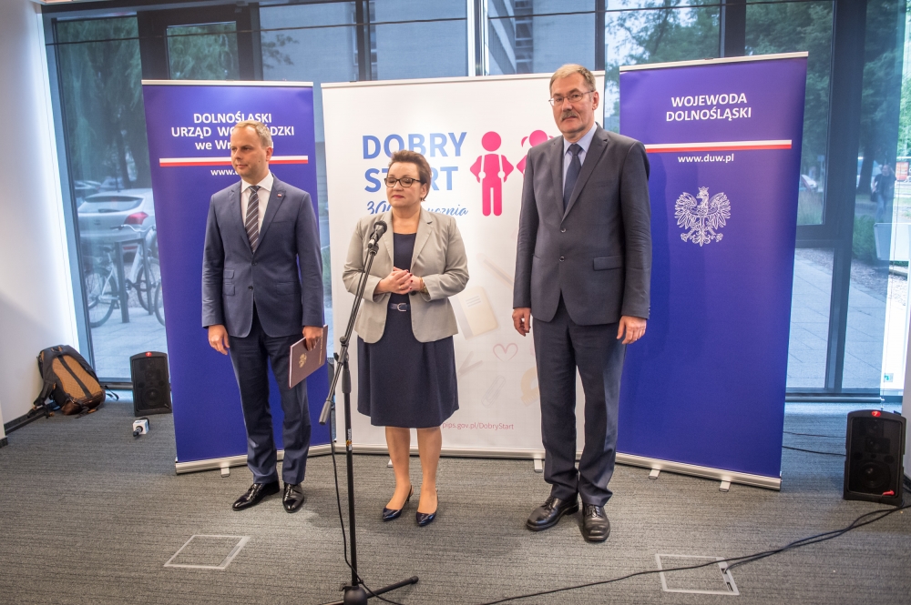 13 czerwca br. odbyła się we Wrocławiu konferencja prasowa Minister Edukacji Narodowej Anny Zalewskiej z udziałem Wojewody Dolnośląskiego Pawła Hreniaka i Dolnośląskiego Kuratora Oświaty Romana Kowalczyka na temat rządowego programu „Dobry Start”.