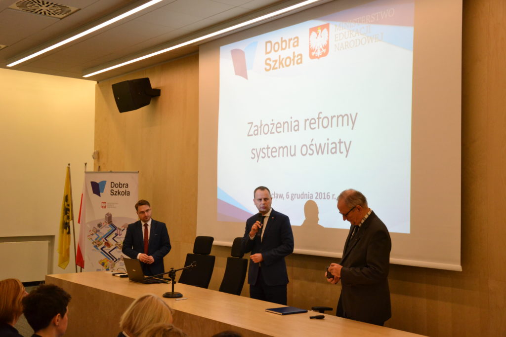 Dolnośląski Wicekurator Oświaty Janusz Wrzal uczestniczył dzisiaj w spotkaniu informacyjnym dotyczącym reformy systemu oświaty zorganizowanym przez Wojewodę Dolnośląskiego Pawła Hreniaka. W debacie uczestniczyli samorządowcy i dyrektorzy szkół z subregionu wrocławskiego i wałbrzyskiego. Dolnośląski Wicekurator Oświaty przedstawił powody przeprowadzenia reformy systemu oświaty i główne jej założenia, następnie odpowiadał na pytania uczestników.