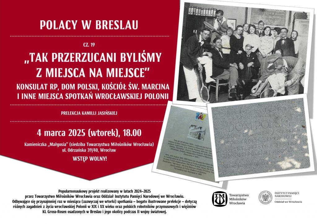 Wrocławska Polonia, która również była reprezentowana na Kongresie, przede wszystkim kojarzy się z grupą ok. 2000–4000 Polaków mieszkających w Breslau w okresie dwudziestolecia międzywojennego, czyli w latach 1918–1939. Trzeba jednak pamiętać o dwóch innych ważnych okresach w dziejach tej społeczności. Pierwszy to lata przed I wojną światową, gdy Polonia mieszkająca w Breslau była bardziej liczna, choć nie istniały jeszcze żadne formy organizacyjne. Kolejny ważny okres to lata II wojny światowej, które były czasem wyjątkowo trudnym. W wojennym Wrocławiu liczba Polaków bardzo wówczas wzrosła, gdyż to tu trafiła duża grupa polskich robotników przymusowych m.in. cywilów z powstańczej Warszawy. Opiekę nad nimi starali się roztoczyć m.in. członkowie Polonii, jak choćby lekarz i społecznik Stefan Kuczyński.