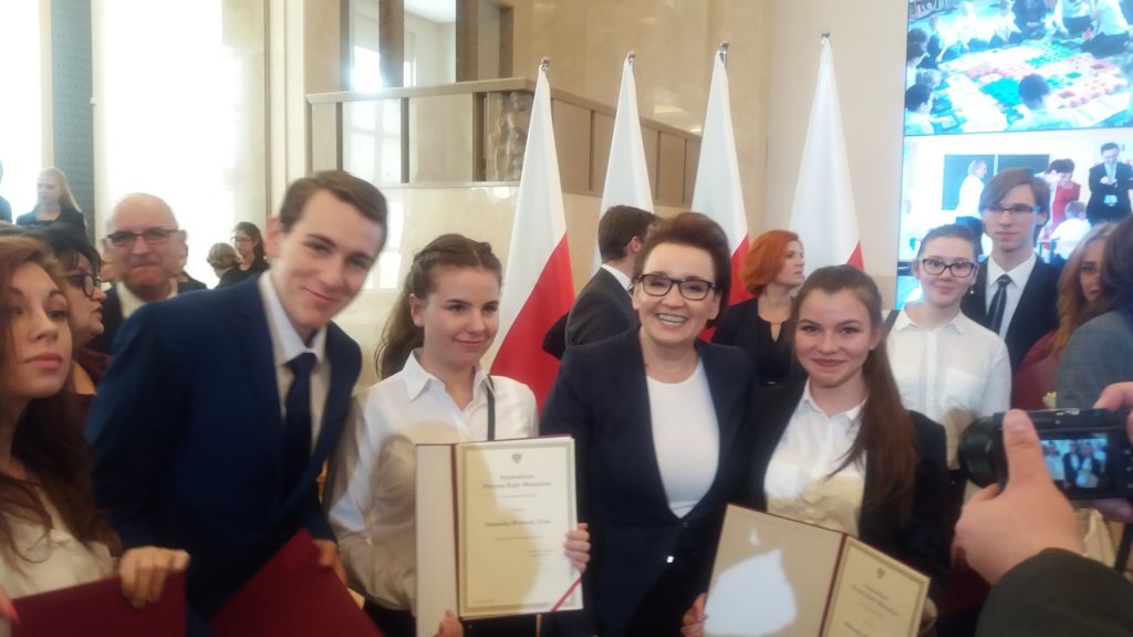 W dniu 14 października 2016 r. z okazji Dnia Edukacji Narodowej w Kancelarii Prezesa Rady Ministrów odbyła się uroczystość z udziałem Prezesa Rady Ministrów pani Beaty Szydło oraz Ministra Edukacji Narodowej pani Anny Zalewskiej. W trakcie uroczystości grupa nauczycieli została wyróżniona odznaczeniami państwowymi oraz nagrodami Ministra Edukacji Narodowej. Wyróżniono również uczniów, którzy z rąk pani Premier otrzymali stypendia Prezesa Rady Ministrów.