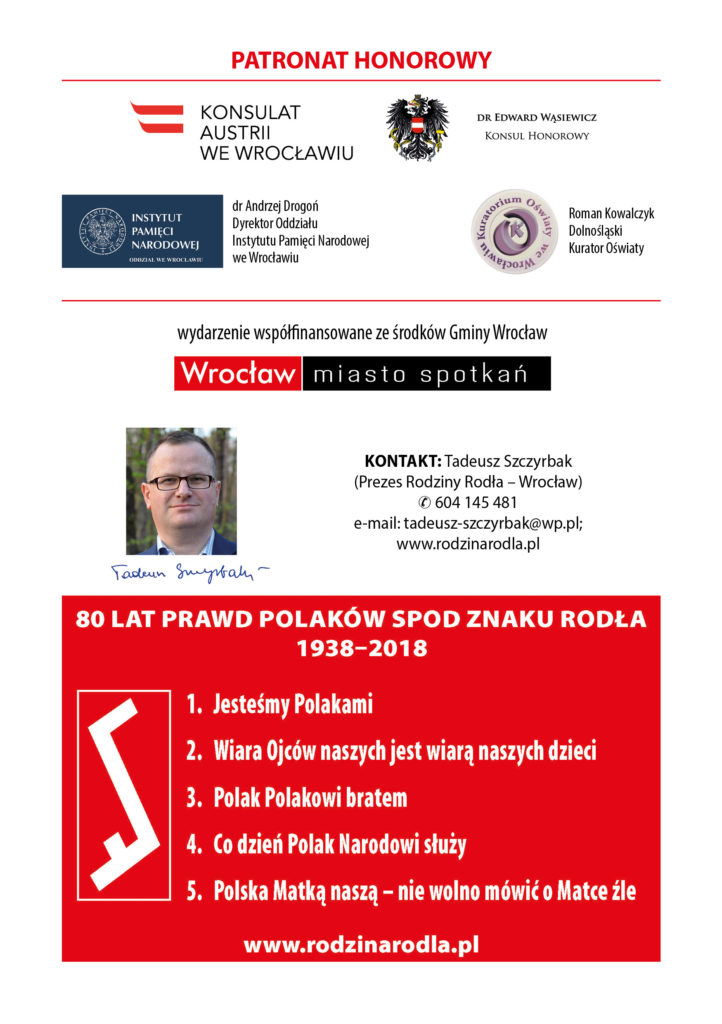 Serdecznie zapraszam na uroczystość w ramach jubileuszowego Roku Prawd Polaków spod Znaku Rodła – Wrocław, 28 października 2018 (w załączeniu zaproszenie).