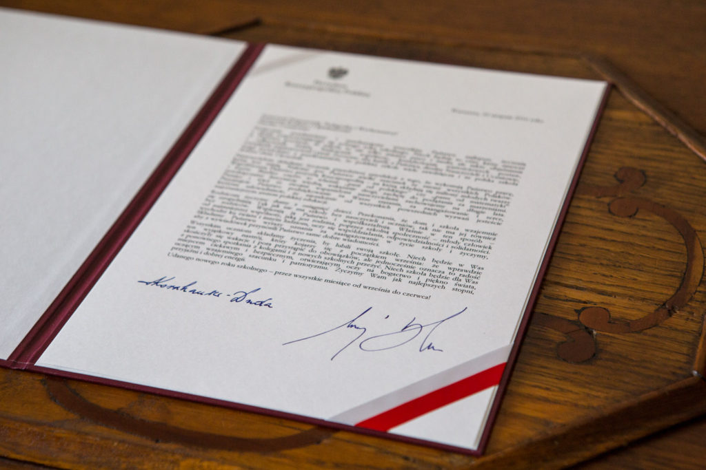Życzymy, aby każdy z Państwa, drodzy Nauczyciele i Uczniowie, mógł powiedzieć z przekonaniem, że polskiej szkole wiele zawdzięcza i że polska szkoła dobrze służy Ojczyźnie napisali Prezydent RP Andrzej Duda i Pierwsza Dama Agata Kornhauser-Duda.